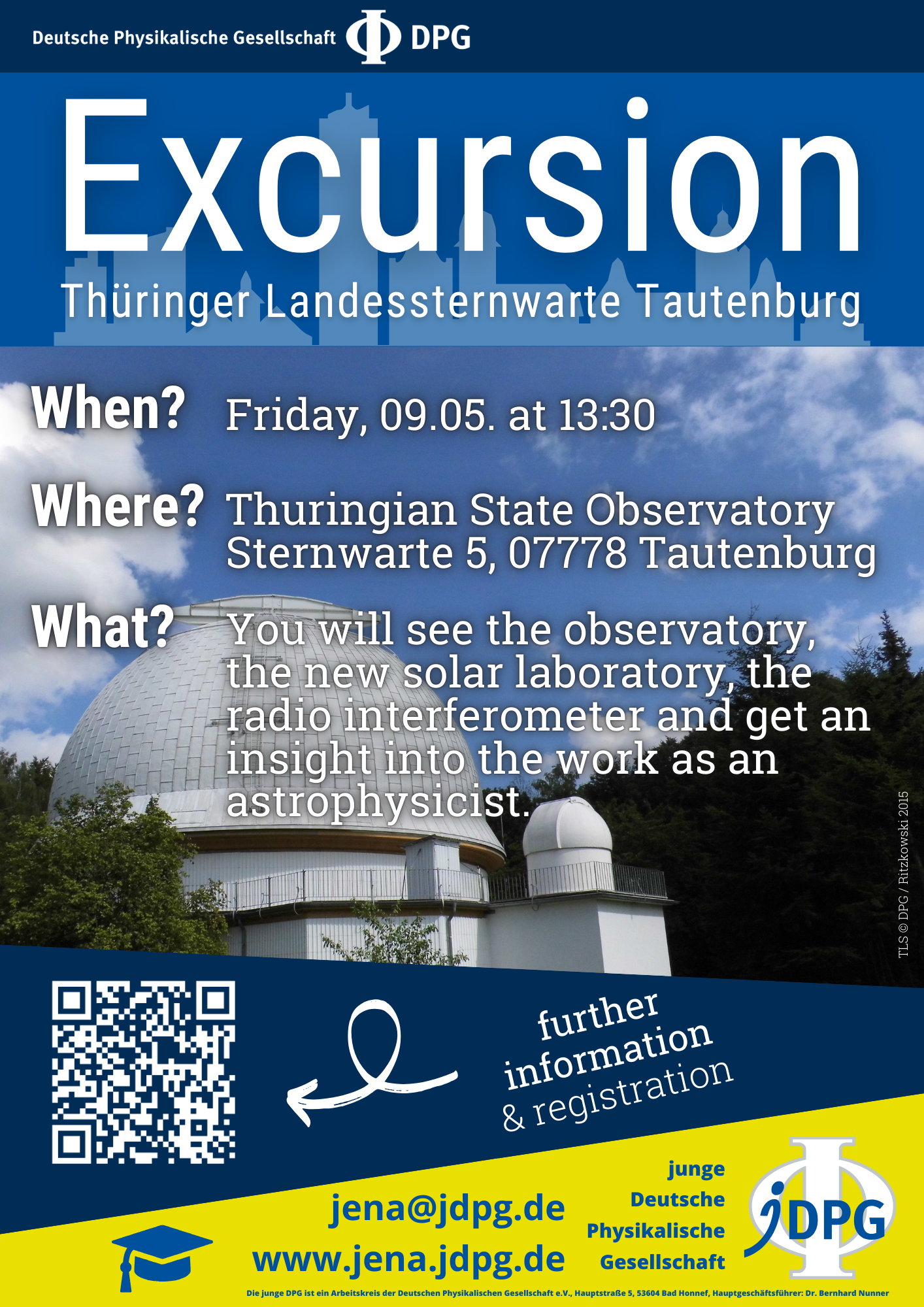 Basic research in astrophysics is carried out at the Thuringian State Observatory in Tautenburg, which is a non-university research institution of the Free State of Thuringia. During our tour, you will gain an insight into the Alfred Jentsch telescope, the LOFAR array, the new solar laboratory and the work of an astrophysicist in a large observatory.