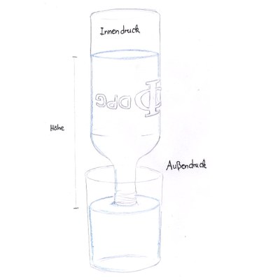 Hält man eine gefüllte Flasche umgedreht in ein Glas Wasser, so fließt nur so viel heraus, bis Innendruck und Außendruck gleich sind und die Wassermenge im stabilen Gleichgewicht halten, falls die Flasche nicht umfällt.