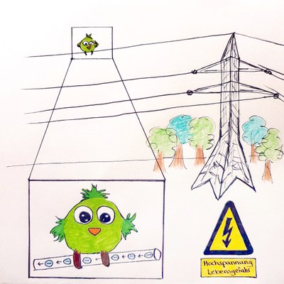 Es ist tödlich, Hochspannungsleitungen anzufassen, wenn man am Boden steht, weil man zum Leiter starker Ströme von der Hochspannungsleitung zur Erde wird. Einem Vogel hingegen passiert nichts, solange er mit beiden Füßen auf der Leitung steht und keinen Kontakt zur Erde hat.