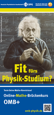 Die DPG ist Partner beim Online Mathematik Brückenkurs (OMB+), mit dem Schülerinnen und Schüler in kompakter Form den Mathematik-Schulstoff wiederholen können. Der OMB+ vermittelt einen Eindruck davon, welches Mathematik-Niveau beim Physik-Studium vorausgesetzt wird und ermöglicht eine gezielte und frühzeitige Vorbereitung aufs Studium.