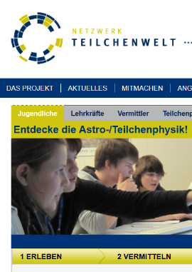 Die Astro- und Teilchenphysik bietet Einblick in die Welt der kleinsten Teilchen und die großen Rätsel des Universums. Das Netzwerk Teilchenwelt hat es sich zum Ziel gemacht, dieses faszinierende Wissen an Lehrkräfte, Jugendliche und Projektleiter zu vermitteln. Die DPG ist Schirmherrin und Partnerin für das Netzwerk Teilchenwelt.mehr...