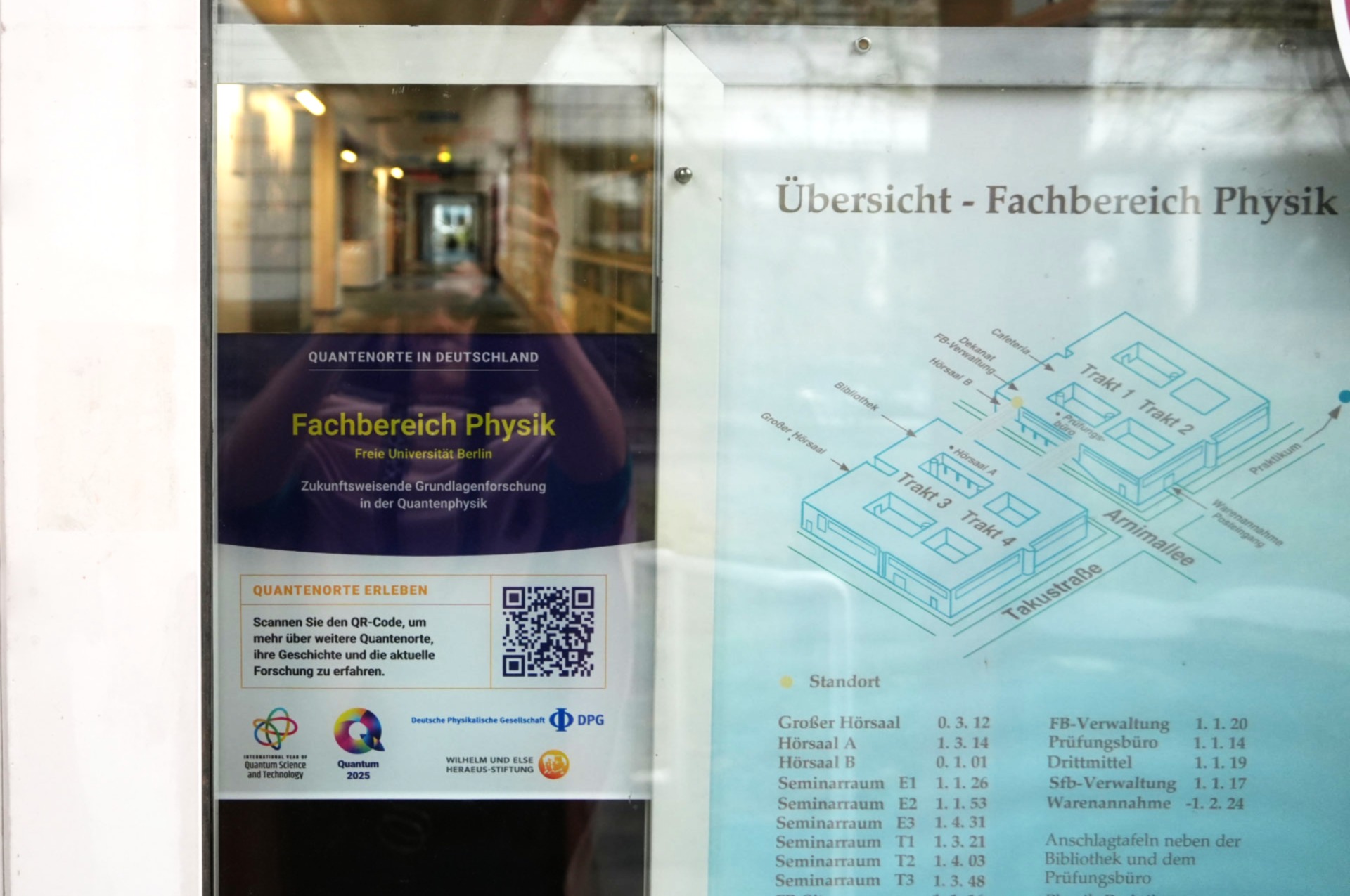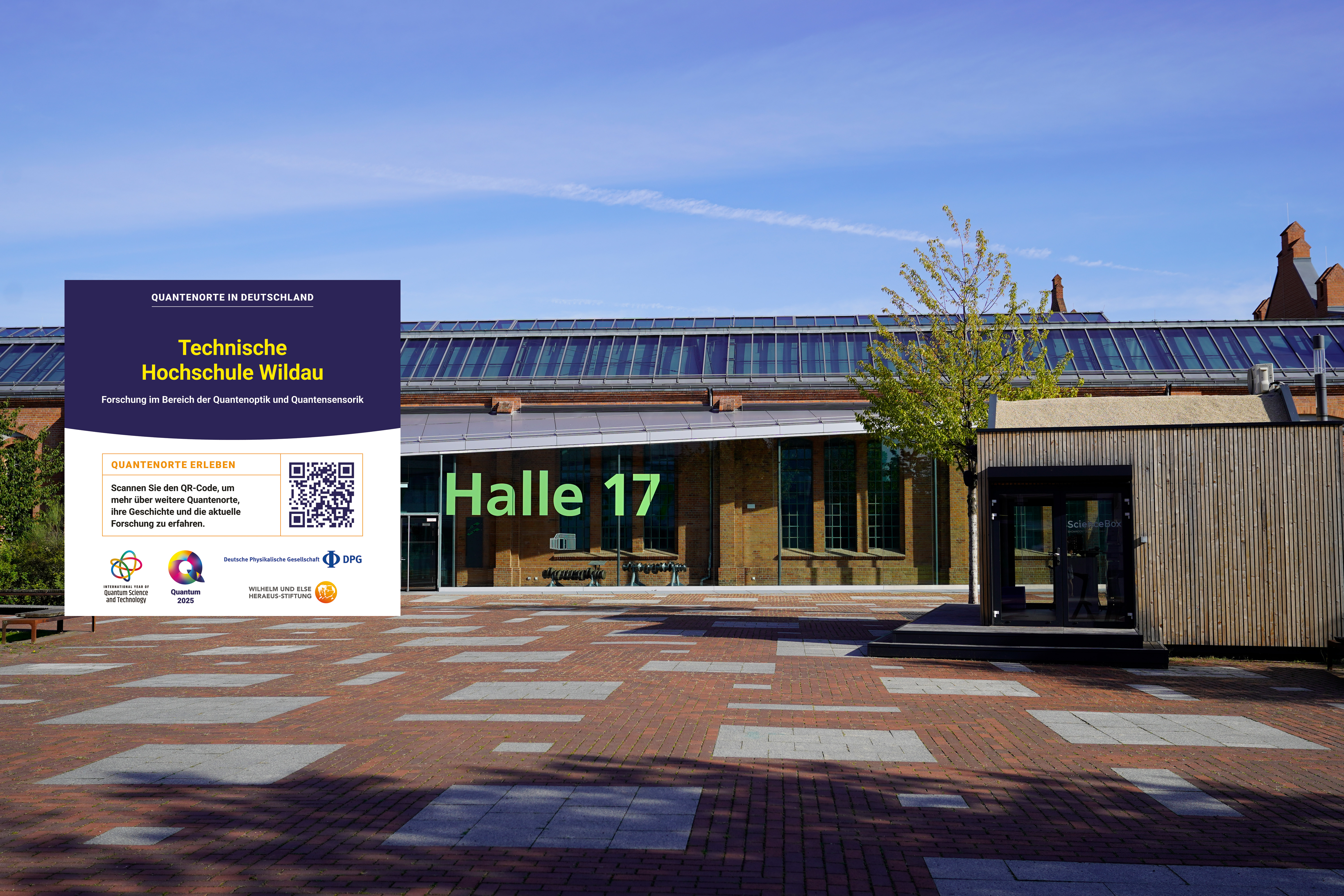 Dem Aufruf der DPG an zahlreiche Institutionen in Deutschland, sich als Quantenort zu registrieren, stieß auf hohe Resonanz. Die ausgewählten Orte wurden auf einer interaktiven online-Landkarte verzeichnet und erhielten eine Gebäudeplakette mit QR-Code zur Webseite. So wurde die große Verbreitung dieses Forschungszweiges für die Öffentlichkeit sichtbar.