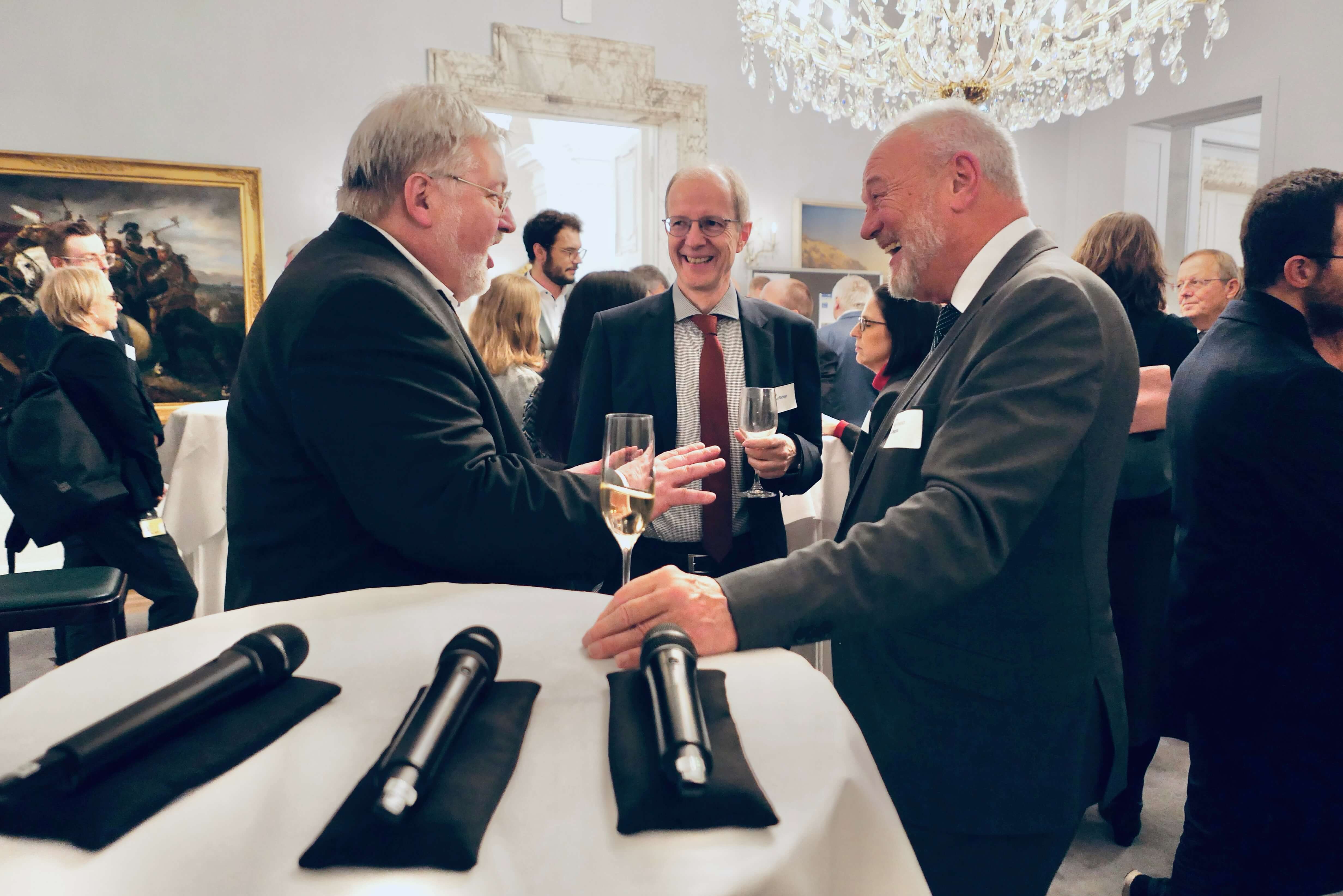 Die offene Gesprächssituation an Stehtischen ermöglichte einen intensiven Austausch. So wurden auch politische Rahmenbedingungen angesprochen, etwa die langfristige Forschungsförderung, der Aufbau von Expertise in Deutschland oder der Transfer aus der Grundlagenforschung in industrielle Anwendungen.