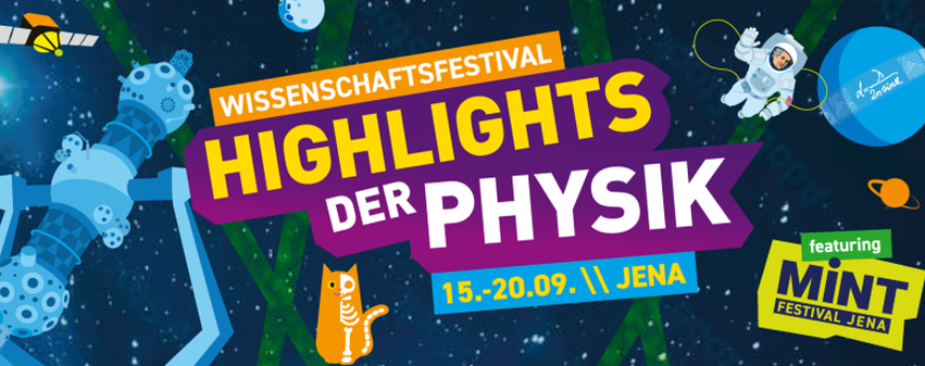 Vom 15. bis 20. September 2025 laden die „Highlights der Physik“ an der Uni Jena rund um den Ernst-Abbe-Platz und in der Goethe-Galerie Besucherinnen und Besucher jeden Alters dazu ein, die faszinierende Welt der Physik zu entdecken. Veranstalterinnen sind die Deutsche Physikalische Gesellschaft (DPG) und die Universität Jena; die Carl-Zeiss-Stiftung ist Premiumpartner, die Wilhelm und Else Heraeus-Stiftung sowie die Helmut Fischer-Stiftung unterstützen das Festival ebenfalls. Der Eintritt zu allen Angeboten ist kostenlos.