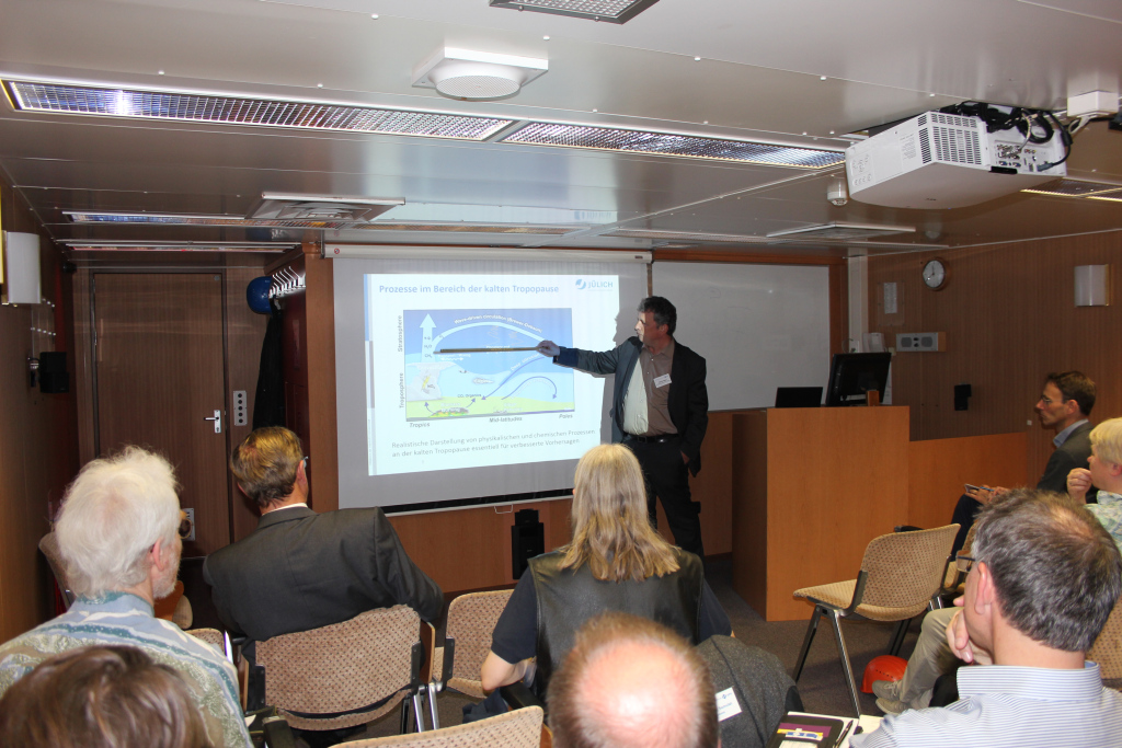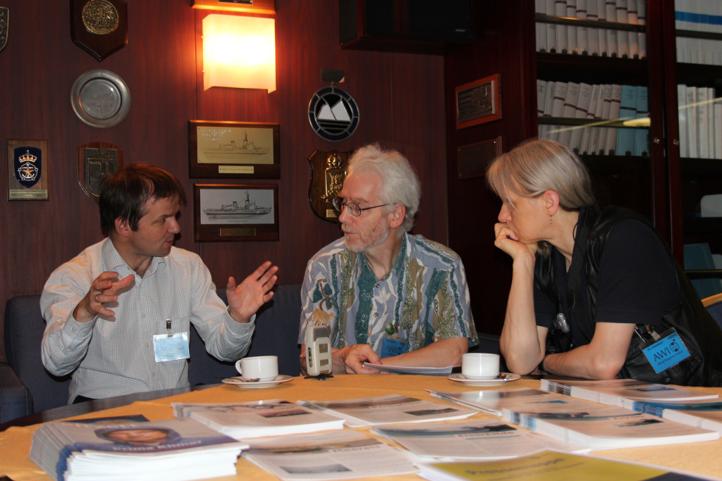 Darüber hinaus brachten Vorträge von Olaf Eisen (AWI), Torsten Ganzow (AWI), Monika Rhein (Universität Bremen) und Martin Riese (FZ Jülich) die Medienvertreterinnen und Medienvertreter auf den aktuellen Stand der Umweltphysik. Die vielen Fragen und Verabredungen zu Hintergrundgesprächen zeugten vom großen Interesse der Medien an der Arbeit der Umweltphysikerinnen und -physiker.