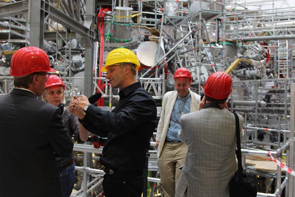 Journalistinnen und Journalisten erhielten bei der DPG-Pressereise 2015 nach Greifswald die Gelegenheit, sich aus erster Hand über den Bau des Fusionsexperiments Wendelstein 7-X zu informieren und dass sich mit kalten Plasmen Wunden desinfizieren lassen.