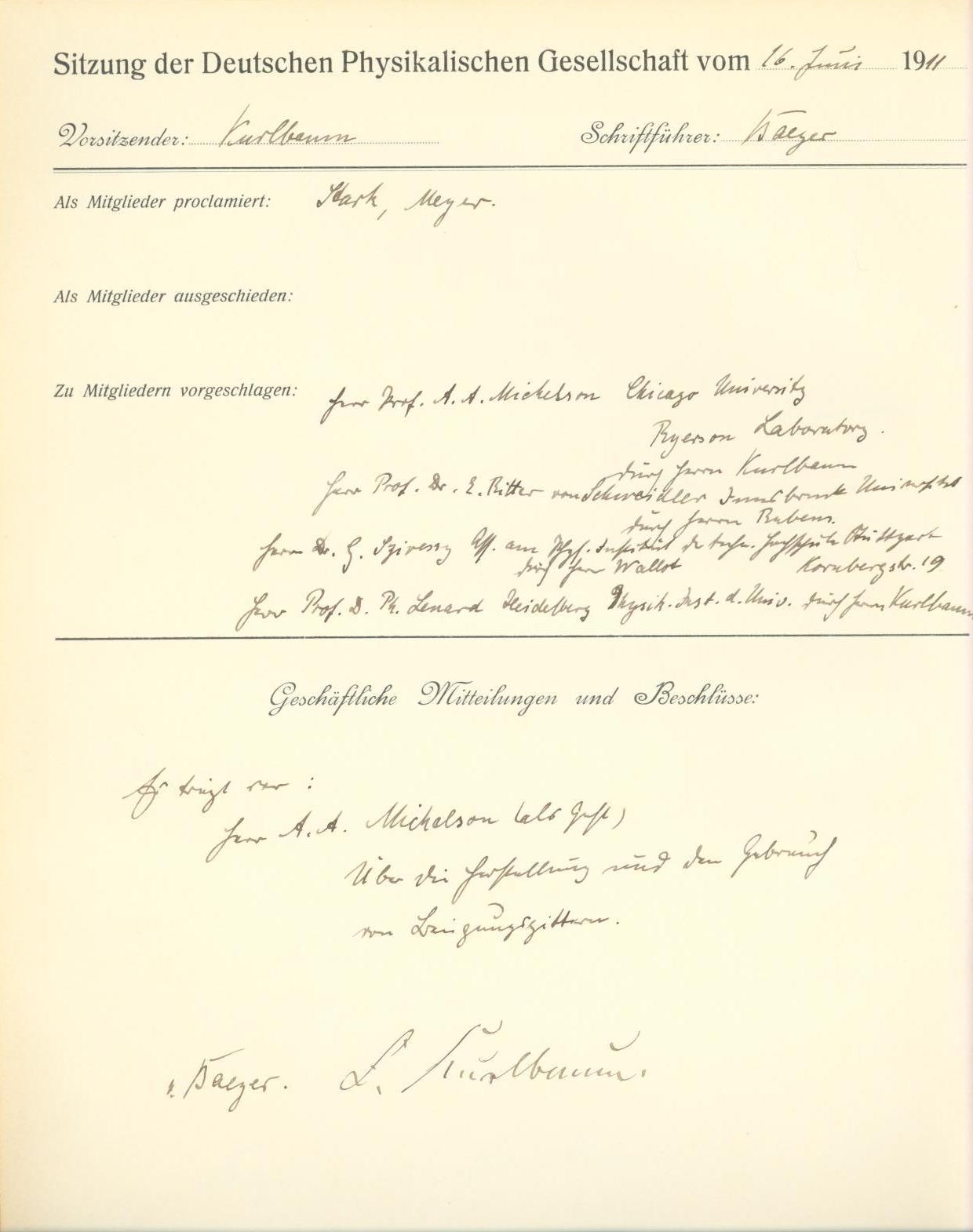 Sitzung vom 16.06.1911: Handschriftliches Protokoll