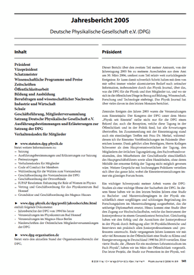 Zentrales Ereignis des Jahres 2005 waren die Veranstaltungen zum Einsteinjahr. Der Kongress der DPG unter dem Motto „Physik seit Einstein“ stellte nicht nur für die DPG einen Rekord dar, auch die Rezeption, welche diese Tagung in der Öffentlichkeit und in der Politik fand, hat alle Erwartungen übertroffen. Im Zusammenhang mit der Einsteintagung stand auch ein einstündiges Treffen mit Frau Dr. Merkel, währenddessen ich ihr Einsteins Veröffentlichungen im Faksimile überreichen konnte. Dank gebührt allen Beteiligten, Herrn Kollegen Schwoerer als dem Hauptverantwortlichen der Tagung, den Mitgliedern der örtlichen Tagungsleitung, den Fachverbandsvorsitzenden, den Mitarbeitern der Geschäftsstelle einschließlich des Hauptgeschäftsführers sowie allen Handelnden, ohne deren Mithilfe der enorme Erfolg der Tagung nicht möglich gewesen wäre. Weitere Gespräche mit hochrangigen Politikern verteilten sich über das ganze Jahr, wobei die Einsteinveranstaltungen immer ein günstiges Forum boten.