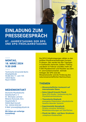 Pressegespräch auf der 87. Jahrestagung der DPG und DPG-Frühjahrstagung der Sektion Kondensierte Materie (SKM)