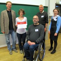 Present at the award ceremony during the general assembly of the DPG biological physics division were: Dr. Olivia Roche (IOP Publishing), Prof. Udo Seifert (outgoing EPL Editor), Prof. Jochen Guck (EPL Editor), and Prof. Stefan Diez (Speaker of the Biological Physics Division).