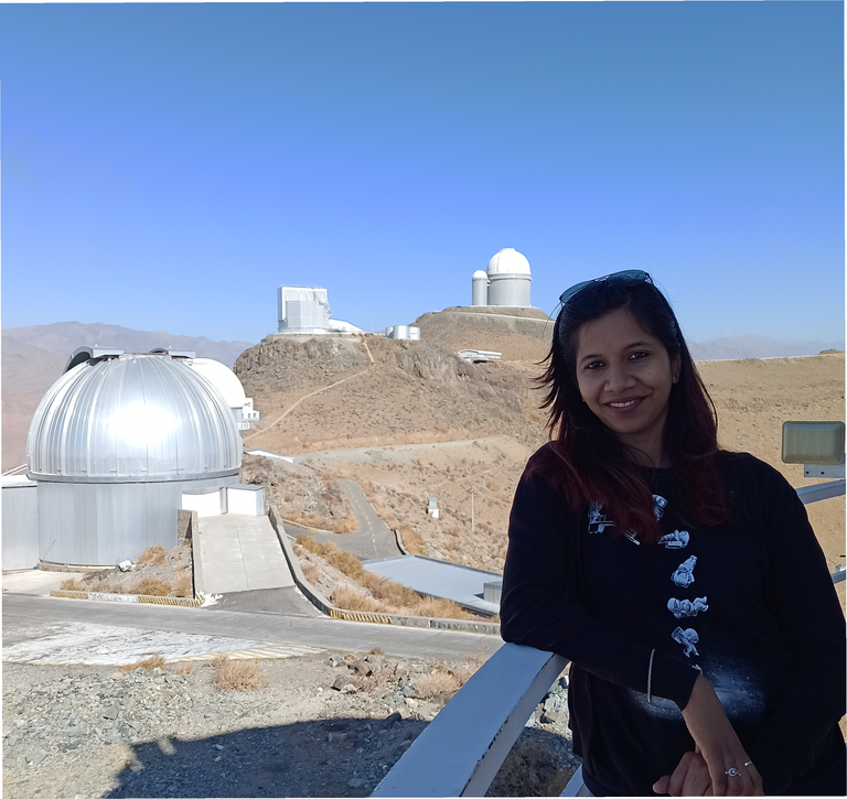 Aishwarya Girdhar is a second-year Ph.D. student at the European Southern Observatory (ESO), in Garching b. Munich. Her interests include the study of galaxies and understanding how these galaxies evolve. For her Ph.D. research, under the supervision of Dr. Vincenzo Mainieri at ESO and Dr. Chris Harrison at the Newcastle University, she is studying a sample of galaxies that have active supermassive black holes at their center called the Active Galactic Nuclei. This galaxy-sample has observations in different wavelengths from ESO's ground-based observatories in Chile, The Very Large Telescope and ALMA, as well as from a space-based Indian observatory, the Astrosat. These black holes are seen to be accreting gas from the galaxy and releasing energy through outflows from the centers of the galaxy. Her research involves understanding these outflows and their effects on star formation in the host galaxy, i.e., the feedback to the galaxies.