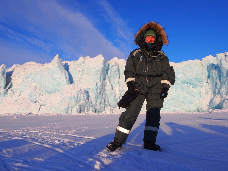 Florina is a meteorology masters student at the Johannes-Gutenberg University Mainz and did an ERASMUS semester at UNIS in Longyearbyen, Svalbard. This is a great place to learn a lot about snow and ice as everything is just in front of the doorstep. For her first, but hopefully not last, arctic fieldwork they measured with a ground penetrating radar the snow depth of glaciers. It is important to be able to monitor the mass balance of the glacier and study the development over time. Besides studying to become an arctic researcher, she is the board member for international relation of the Young German Physical Society and tries to encourage others to make their own experiences abroad.