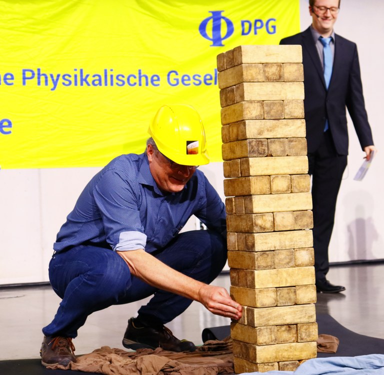 Im dritten Spiel, "Jenga", stand die Geschicklichkeit im Vordergrund. Zusätzliche Herausforderungen wurden in Form von Subspielen hinzugefügt, bei denen ein zusätzlicher Stein gezogen werden musste. Diese Subspiele umfassten das Erkenen von bekannten Formeln, deren Buchstaben durch Bilder ersetzt wurden und kleine Rechenaufgaben. Hier hatten die Professoren die Nase vorn und gewannen das Jengaspiel ach einer hochdramatischen Schlussphase, in der der Turm mehrmals schon umgefallen schien!