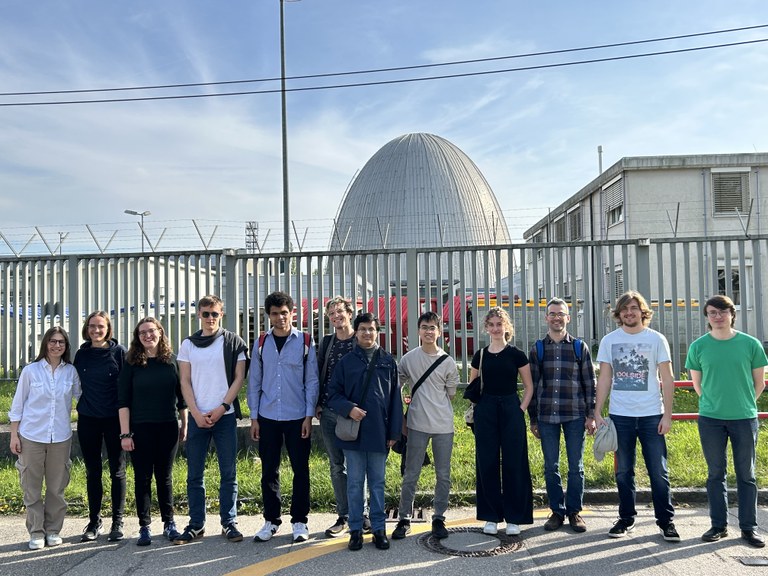 Am 12.04.2024 ging es mit der Münchner Regionalgruppe der Jungen Deutschen Physikalischen Gesellschaft in die Forschungs-Neutronenquelle Heinz Maier-Leibnitz. Die Forschungs-Neutronenquelle Heinz Maier-Leibnitz, auch Forschungsreaktor München 2 oder FRM2 genannt, wird von der Technischen Universität München betrieben und gehört zu den leistungsstärksten Forschungsreaktoren Deutschlands. Zusammen mit dem "Atomei", dem denkmalgeschützten Gebäude des Vorgängerreaktors, bildet der FRM2 eine ikonische Landmarke und ist wichtiger Bestandteil des Campus von Garching bei München. Als eine der leistungsfähigsten Neutronenquellen der Welt speist der Reaktor zahlreiche wissenschaftliche Experimente. Doch wofür ist so eine Neutronenquelle eigentlich gut? Diese und weitere Fragen wurden den zwei Gruppen aus insgesamt 13 Interessierten von drei Wissenschaftlern des FRM2 während der Führung beantwortet. Bevor es dazu kommen konnte, durften wir allerdings erstmal erleben, was das Kernreaktorpersonal unter Sicherheit versteht. Nach vollständiger Durchsuchung durch den Sicherheitsdienst, Ausstattung mit Personendosimetern und einigen Sicherheitstüren und -schleusen konnte endlich das Reaktorgebäude erkundet werden. Doch nun zu voriger Frage: In üblichen Kernreaktoren wird das Uran-Isotop 235 mit einem Neutron beschossen, um es zu spalten. Dies setzt einiges an Energie und nebenbei auch weitere Neutronen frei, mit denen mehr Uran gespalten und damit mehr Energie erzeugt wird. Der FRM2 ist darauf ausgelegt, eine große Anzahl zusätzlicher Neutronen freizusetzen, die dann für wissenschaftliche Experimente genutzt werden können. Solche Experimente gibt es im Reaktorgebäude und in der angrenzenden Neutronenleiterhalle zuhauf. Während der Führung wurden beispielsweise Aufbauten präsentiert, die mithilfe der Neutronen Antimaterie produzieren. Weitere Apparate verwenden die Neutronen für bildgebende Verfahren, um zum Beispiel Kaffe in einer Kanne beim Kochen zuzuschauen oder in eine Batterie zu blicken, während sie gefertigt wird, wodurch Herstellungsprozesse optimiert werden können. Neutronen werden auch in Verfahren zur Krebsbekämpfung oder zur Bestimmung der Herkunft antiker Vasen eingesetzt. Der FRM2 ermöglicht also eine Vielzahl von Forschungsprojekten. Zusätzlich zu wissenschaftlichen Aspekten erfuhren wir auch einiges über die Herausforderungen, die der Betrieb eines solchen Reaktors mit sich bringt. Neben politischen Auflagen, Komplikationen durch den Angriffskrieg Russlands auf die Ukraine, Betriebspausen wegen der Corona-Pandemie und ständigen bürokratischen Hürden stellt seit einiger Zeit die technische Komponente das Hauptproblem dar. Es wurden nämlich Mängel im Reaktor festgestellt, die den Betrieb beeinträchtigen. Da Reparaturarbeiten im Reaktorbecken extrem aufwändig sind und zusätzlich Ersatzteile erst neu gefertigt werden müssen, was bei für Kernreaktoren zertifizierten Teilen nicht so einfach ist, steht im Moment noch in den Sternen, wann der Betrieb wieder aufgenommen werden kann. Die Mitarbeiter:innen lassen sich davon allerdings nicht unterkriegen. Stattdessen wird die Zeit genutzt, in der der Reaktor stillsteht, um neue Experimente einzurichten. Es ist sogar eine völlig neue Experimentierhalle geplant, um den Reaktor, wenn er wieder läuft, bestmöglich ausnutzen zu können. Nach einer langen Führung quer durch das Gebäude und einer weiteren Untersuchung, diesmal nicht durch den Sicherheitsdienst sondern durch einige Geräte zur Strahlungsmessung, kam die Führung dann zu einem Ende. "Vielleicht sehen wir einen von euch ja nochmal hier, es kann ja nicht Jeder Astro-Teilchen machen" verabschiedeten sich die Wissenschaftler in der Hoffnung, dass sie für ihr Fach begeistern konnten, womit es für uns dann, natürlich erst nachdem ein Gruppenfoto vor dem Gelände geschossen wurde, in einen entspannten Nachmittag ging. Bericht: Fabian Balz und Chandrashekhararao Kulkarni |