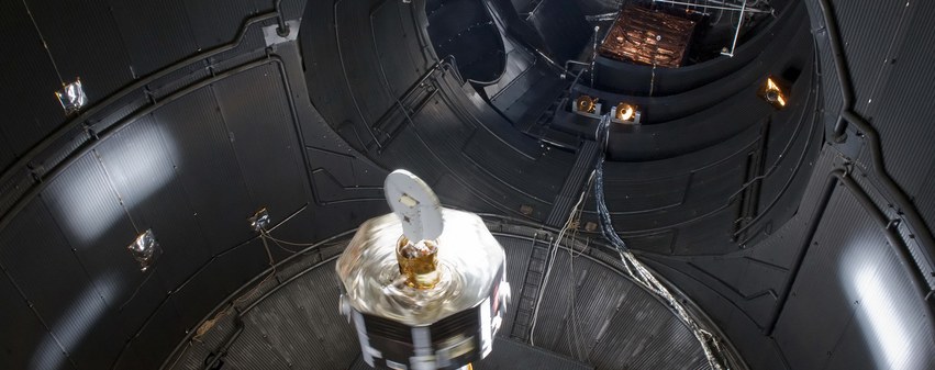 Mit Hilfe einer virtuellen 3D-Tour sahen wir die Testanlagen, mit denen die Satelliten auf Herz und Nieren geprüft werden und zum Beispiel Temperaturunterschiede von einigen 100 Kelvin aushalten müssen (siehe Bild ganz oben). Insbesondere die Anwendung von 3D-Druck-Verfahren für die Errichtung einer möglichen Mars-Basis aus Mars-Sedimenten traf auf großes Interesse.