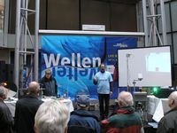 Die beiden Projektleiter Eberhard Wassermann, Physik-Professor an der Universität Duisburg-Essen, und sein Kollege, Privatdozent Dr. Axel Carl, freuen sich über den regen Besuch. „Ich habe mich seinerzeit dafür eingesetzt, dass die „WellenWelten“ nach Bremen kommen“, betont Wassermann. „Der Strom an Neugierigen zeigt: dies ist genau das richtige Pflaster. Die magische Grenze von 10.000 Besuchern werden wir sicher erreichen.“ Vorträge, Showprogramm und Ausstellung kommen gut an. „Die Besucher nehmen sich Zeit und stellen viele, viele Fragen. Genau das ist unser Anliegen“, sagt Axel Carl.