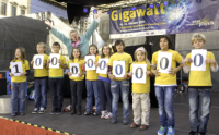 Augsburg, 13. Oktober 2010 – Bereits 18.000 Besucher gab es bislang bei den „Highlights der Physik“ in Augsburg. In den Ausstellungszelten auf dem Rathausplatz, Vorträgen und Wissenschaftsshows werden den Besuchern die physikalischen Grundlagen der Energie und der Energieversorgung auf anschauliche Weise präsentiert. Das Festival unter dem Motto „Gigawatt“ war am Samstag mit einer von Ranga Yogeshwar moderierten Wissenschaftsshow gestartet. Es gastiert noch bis Donnerstagnachmittag in der Fuggerstadt. Der Eintritt zu allen ist Veranstaltungen frei. (Bild: „Bildungsclown“ Jörn Birkhahn und seine jugendlichen Helfer zeigen: Das ist „Giga“/ Foto: iserundschmidt/Bernd Müller)