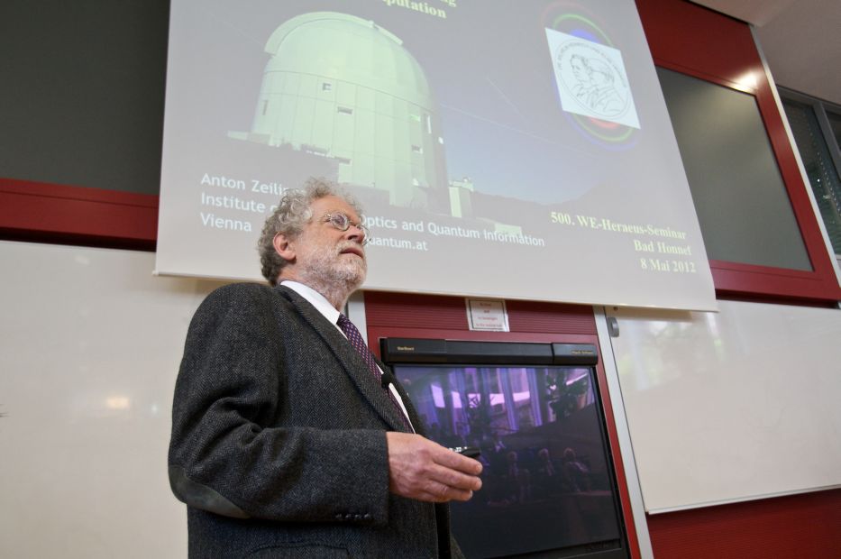 „Ich bin stolz darauf, dass die DPG heute an ihrem Hauptsitz, dem Physikzentrum Bad Honnef, Gastgeber eines Highlights der 'Highlights of Quantum Optics' ist, dem Festvortrag von Professor Anton Zeilinger. Es könnte keinen würdigeren Rahmen geben, um die Einweihung der neu gestalteten Begegnungsstätte hier im Physikzentrum zu feiern. Für deren Sanierung geht unser herzlicher Dank an die Wilhelm und Else Heraeus-Stiftung“, begrüßte Johanna Stachel, Präsidentin der DPG, die Anwesenden.