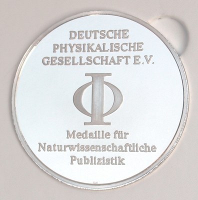 Bad Honnef, 12. November 2014 – Die Deutsche Physikalische Gesellschaft (DPG) verleiht die „Medaille für naturwissenschaftliche Publizistik“ in diesem Jahr an Albrecht Beutelspacher. Sie ehrt ihn damit für seine publizistischen Leistungen, die zur Verbreitung naturwissenschaftlich-physikalischen Denkens im deutschsprachigen Raum in hervorragender Weise beitragen.