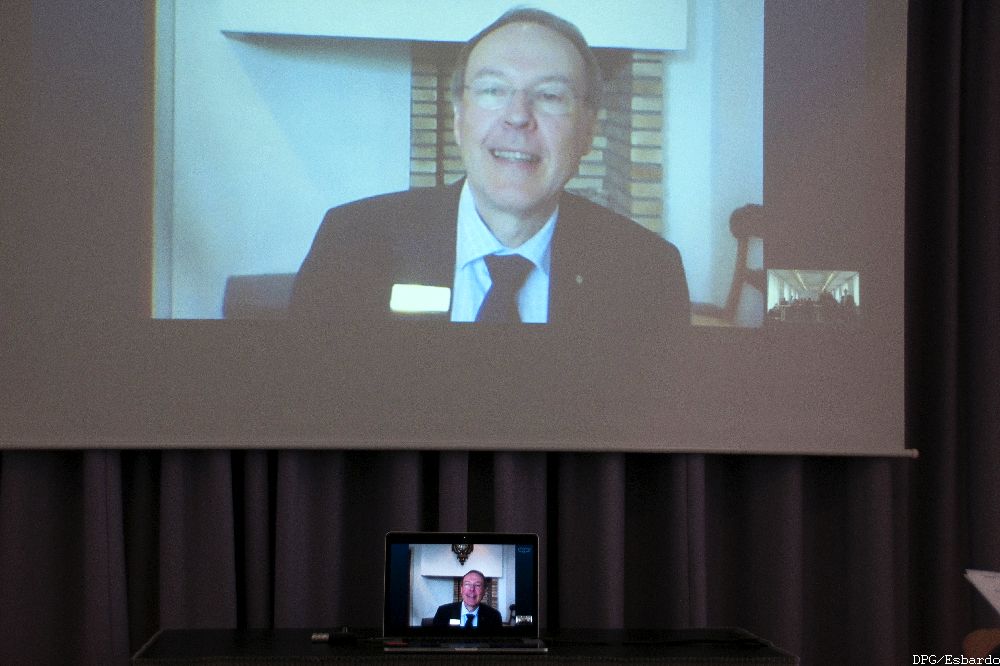 Die DPG bot Medienvertretern nun schon zum sechsten Mal die Veranstaltung „Live aus Stockholm“. Eingestimmt wurden die Gäste durch Grußworte von Arnulf Quadt sowie dem schwedischen Botschaftsrat Carl Michael Gräns in Berlin. Fester Bestandteil der Veranstaltung ist eine Live-Schaltung nach Schweden, die den Journalistinnen und Journalisten die Gelegenheit bietet, aus erster Hand zu erfahren, was die Jury zu ihrem Urteil bewogen hat.
