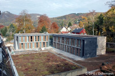 Als Folge einer Sanierung des historischen Stiftsgebäudes verlor das Physikzentrum Bad Honnef an Bettenkapazität. Um diese wieder an das Tagungsangebot anzupassen, wurde ein modernes Gästehaus mit 40 Gästezimmern und einer Tiefgarage für 39 PKW errichtet. Die Grundsteinlegung fand am 21. November vergangenen Jahres statt. Jetzt ist das Haus bezugsfertig und die feierliche Eröffnung mit Schlüsselübergabe findet statt: