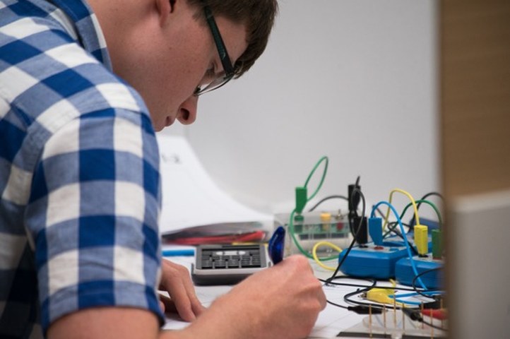 Bild: Teammitglied Sven Jandura bei der experimentellen Klausur der Internationalen PhysikOlympiade 2016.