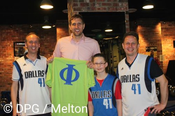 Der elfjährige Patrick hat den Hauptpreis von Physik im Advent 2015 gewonnen. Zusammen mit seinem Vater und DPG-Vorstand Arnulf Quadt reiste er nach Dallas zu zwei Spielen der Dallas Mavericks. Ein besonderes Highlight war der „Trikottausch“ beim persönlichen Treffen mit Dirk Nowitzki nach dem Spiel. Ein herzlicher Dank gilt Nowitzkis Trainer und Preis-Spender Holger Geschwindner.