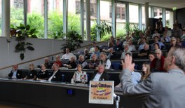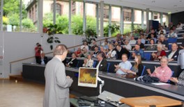 Vollbesetzter Hörsaal beim Bad Honnefer Industriegespräch über die Frage, ob Naturkonstanten wirklich konstant sind. In der Standard-Theorie der Teilchenphysik gibt es über zwanzig Naturkonstanten. Sie scheinen sozusagen „vom Himmel“ zu fallen. Der bekannte theoretische Physiker Harald Fritzsch berichtet über Hinweise, dass die Naturkonstanten möglicherweise gar nicht so beständig sind.