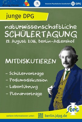 Bad Honnef, 2. August 2016 – Am Freitag, dem 19. August 2016, findet von 10:00 Uhr bis 16:30 Uhr an der Humboldt-Universität Berlin die Schülertagung der jungen DPG der Deutschen Physikalischen Gesellschaft (DPG) statt.