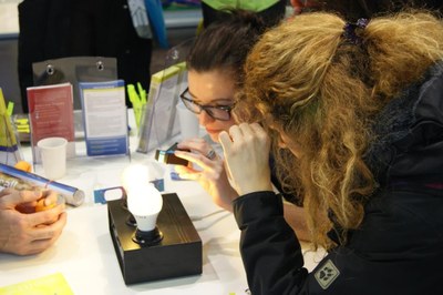 Hannover / Bad Honnef, 1. Juni 2017 – Zusammen mit der Georg-August-Universität Göttingen präsentiert die Deutsche Physikalische Gesellschaft (DPG) vom 10. bis 18. Juni 2017 in Hannover faszinierende physikalische Phänomene und Experimente. Auf dem Stand EF-05 in Halle 9 der IdeenExpo kann man zum Beispiel Föhn-Ping-Pong spielen, die Spektren verschiedener Leuchtmittel bestaunen, einen Flaschenteufel auf- und abtauchen lassen, Schattenbilder zeichnen oder Experimente mit Luftballons machen. Zahlreiche Helferinnen und Helfer – oft angehende vielfach aber auch gestandene Physikerinnen oder Physiker – stehen bereit, um mit den Wissenshungrigen die Experimente durchzuführen und die Phänomene zu erklären.