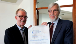 In Anerkennung seiner Pionierleistungen auf dem Gebiet der theoretischen Plasmaphysik erhielt Reimar Lüst bei einem Treffen mit DPG-Präsident Rolf-Dieter Heuer am DESY in Hamburg nun die Pergamenturkunde zur DPG-Ehrenmitgliedschaft überreicht.