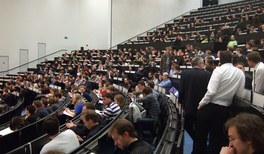 Klaus von Klitzing zeigt um 11:00 Uhr im gleichen Hörsaal, wie stark der Einfluss von elektrischen Quantenstandards auf die Neudefinition ist, bei der die Elementarladung e und die Planck-Konstante h als Naturkonstanten nun feste Werte annehmen.