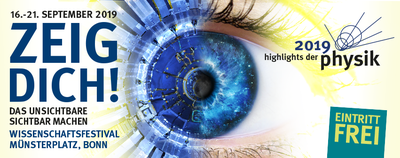 Die Show ist der Auftakt des bunten Wissenschaftsfestivals „Highlights der Physik“, das einmal jährlich mit wechselnder Thematik in einer Universitätsstadt stattfindet. Unter dem Motto „Zeig Dich! Das Unsichtbare sichtbar machen“ zeigen Wissenschaftlerinnen und Wissenschaftler vom 16. bis zum 21. September in Bonn vor allem, wie es der aktuellen physikalischen Forschung gelingt, Unsichtbares sichtbar zu machen. Herzstück des Wissenschaftsfestivals ist eine eigens komponierte Mitmach-Ausstellung in einer Zeltstadt auf dem Münsterplatz. An jedem der rund 50 Exponate stehen Wissenschaftlerinnen und Wissenschaftler aus Bonn und dem gesamten Bundesgebiet für Fragen, Erklärungen und Diskussionen zur Verfügung. Die Ausstellung zeigt dabei Analyse- und Messmethoden von der Teilchenphysik über die Astrophysik bis zur geophysikalischen Umwelt- und Atmosphärenforschung.