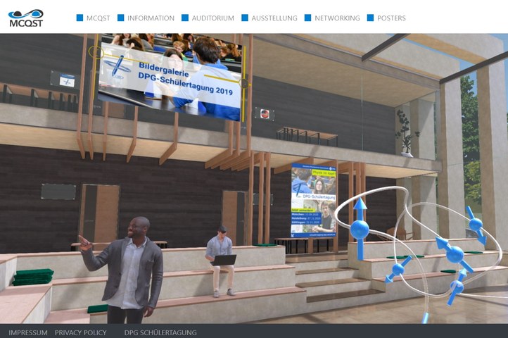 Auf der dreidimensionalen Plattform konnten die mehr als 50 Teilnehmenden neben dem Programm auf drei Bühnen unterschiedliche Posterräume erkunden und sich an virtuellen Gesprächstischen austauschen.