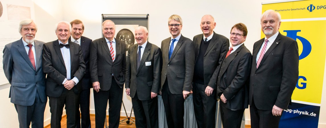 Neun (ehemalige) DPG-Präsidenten bei der Feier des 175. Gründungsjubiläums am 14. Januar 2020 im Magnus-Haus Berlin.