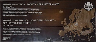 Bad Honnef, 2. Juni 2021 – „Jena verfügt seit der Neuzeit über eine außerordentlich große Dichte an historischen Gebäuden, die für die Physik und Astronomie von unschätzbarerer Bedeutung sind,“ sagt Lutz Schröter, Präsident der Deutschen Physikalischen Gesellschaft (DPG): „Daher haben wir uns bei der Europäischen Physikalischen Gesellschaft für die Auszeichnung der gesamten Stadt als historische Stätte eingesetzt“. Dieser Akt ist selbst im wahrsten Sinne des Wortes historisch, denn bislang hat die EPS nur einzelne Forschungseinrichtungen, Labore oder wissenschaftliche Institute ausgezeichnet, in Deutschland zum Beispiel die Physikalisch-Technische Bundesanstalt (PTB) in Berlin, die Ludwig Maximilian Universität in München, das frühere Physikalische Institut in Würzburg, die ehemaligen Laboratorien der Heidelberger Wissenschaftler Gustav Robert Kirchhoff (1824 bis 1887) und Robert Wilhelm Bunsen (1811 bis 1899), das ehemalige physikalische Institut der Universität Frankfurt sowie die RWTH Aachen.
