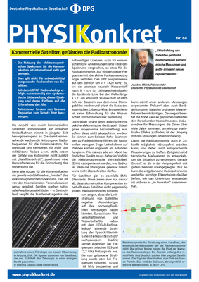 Die neueste Ausgabe des Faktenblatts der DPG möchte auf diese Problematik aufmerksam machen. „Störstrahlung von Satelliten gefährdet höchstsensible astronomische Messungen und sollte dringend besser reguliert werden“, fordert daher DPG-Präsident Joachim Ullrich. Denn nur so kann die erdgebundene Radioastronomie weiterhin wichtige Erkenntnisse darüber liefern, wie das Universum entstanden ist und was es „im Innersten“ zusammenhält.