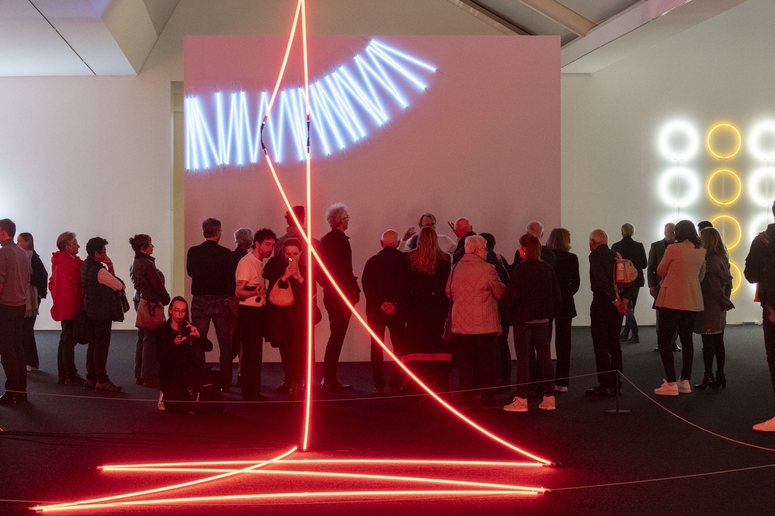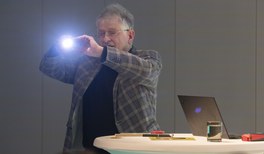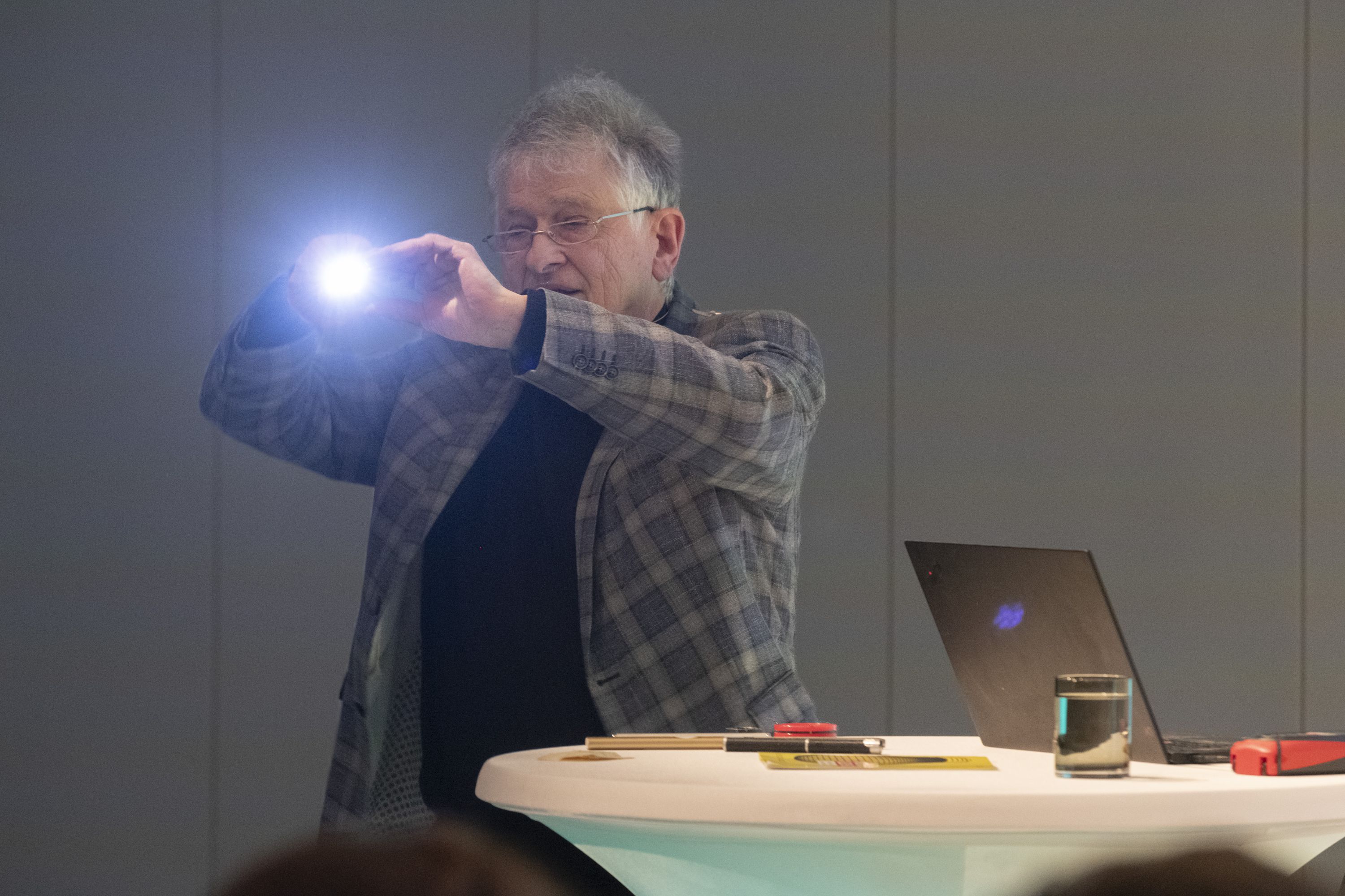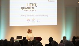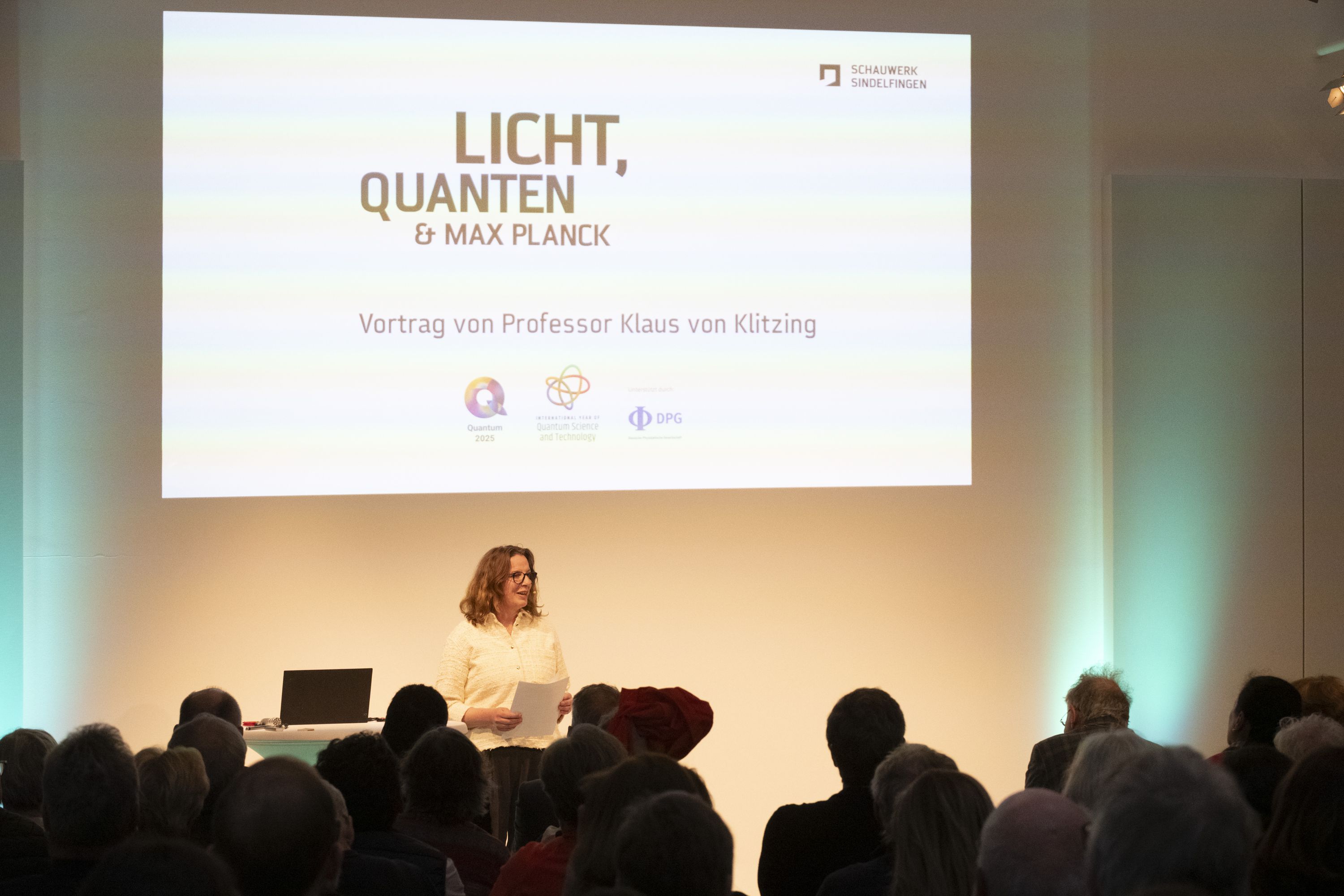 Wie eine Quantenjahr-Veranstaltung in einem Kunstmuseum ablaufen kann, zeigte das Schauwerk Sindelfingen am 2. April in eindrucksvoller Weise. In einem öffentlichen Abendvortrag erläuterte Klaus von Klitzing, Physik-Nobelpreisträger 1985, unter dem Titel „Licht, Quanten & Max Planck“ wichtige Elemente der Quantenphysik, beginnend mit Max Plancks Theorie des schwarzen Strahlers und des Konzeptes von Licht als Photonen. Es folgten Anwendungen der Quantenphysik bis hin zur aktuellen Forschung an Quantencomputern sowie zur gesellschaftsrelevanten Nutzung von Sonnenenergie mittels Solarzellen. Vielfach veranschaulichte Klaus von Klitzing dies anhand von Kunstwerken aus der aktuellen Ausstellung „Neon, LED &. Co.“, die Lichtkunst aus der Zeit der 1960er Jahre bis heute zeigt. Der Abendvortrag war eingebettet in eine Sonderöffnung des Museums, Kurzführungen zu „Neon, LED & Co.“ sowie einem interdisziplinären Austausch vor den Kunstwerken. „Quantenphysik auf diese Weise unserem Publikum nahe zu bringen war ein voller Erfolg und auch die Presse war vertreten und hat begeistert berichtet“, sagt Svenja Frank, die Direktorin des Schauwerks. „Bereits Wochen im Voraus war die Veranstaltung ausgebucht und wir haben den Vortrag zusätzlich per Video in einen Ausstellungsraum übertragen, um insgesamt 220 Gäste begrüßen zu können.“