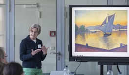 Am 2. und 3. April fanden an der Universität Stuttgart sowie im Schauwerk Sindelfingen drei Veranstaltungen statt, die gemeinsam das Projekt „Kunst und Quanten: Quantum2025 in Kunstmuseen“ für eine vielschichtiges Publikum einläuteten. Ziel dieses Projektes ist es, das Internationale Quantenjahr 2025 mit interdisziplinärem Blickwinkel im Kontext bildender Kunst in verschiedenen Veranstaltungsformaten umzusetzen. Insbesondere soll dabei kunstinteressiertes Museumspublikum angesprochen werden, welches selten mit Physik und damit verwandten Themen in Kontakt kommt. Dass diese ungewöhnliche Konstellation, nämlich die konkrete Verknüpfung von (Quanten-)Physik und bildender Kunst, auch viele Physikerinnen und Physiker neugierig machen und ihnen zu neuen Einblicken in ihr vertrautes Fachgebiet verhelfen kann, ist dabei ein willkommener Nebeneffekt.