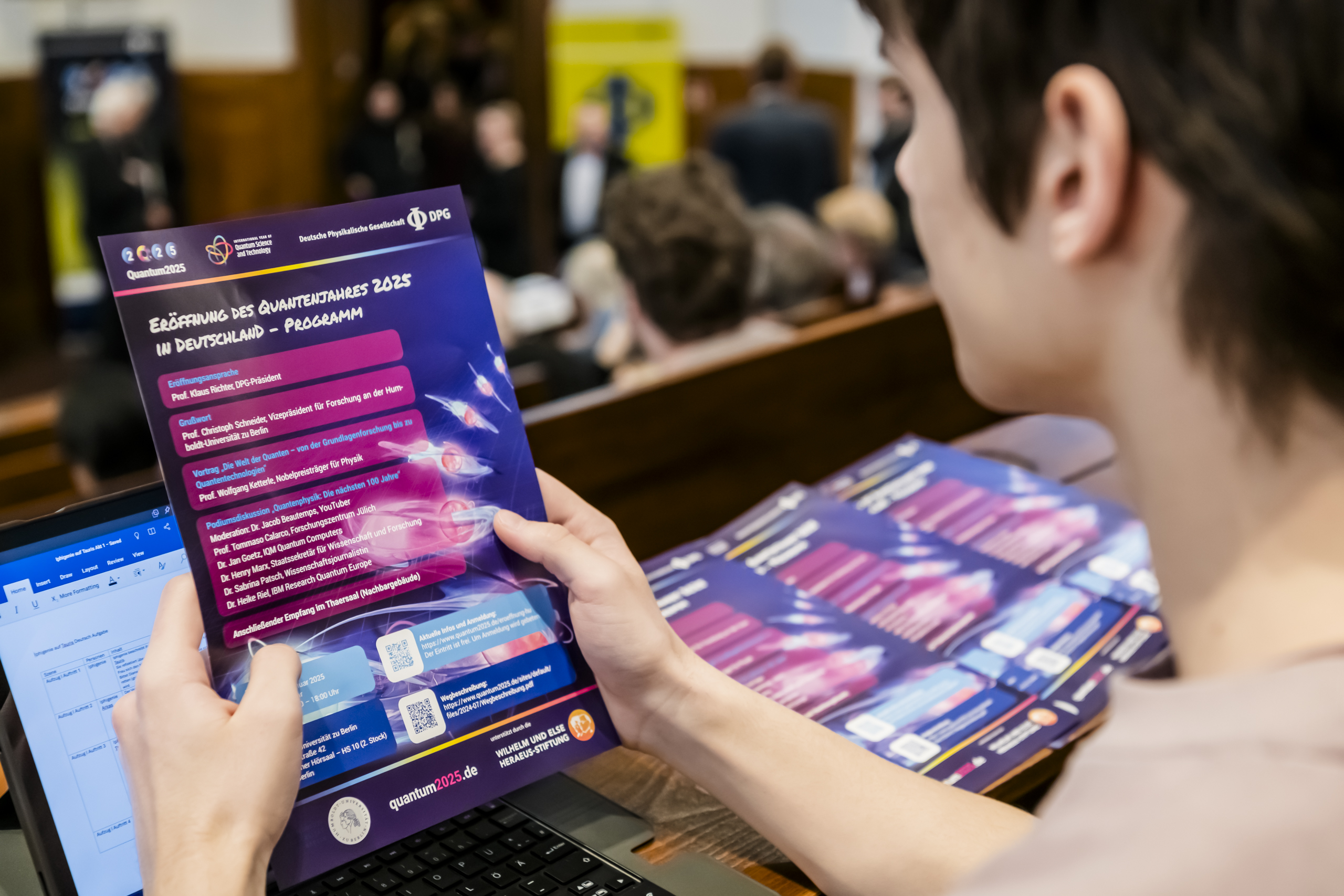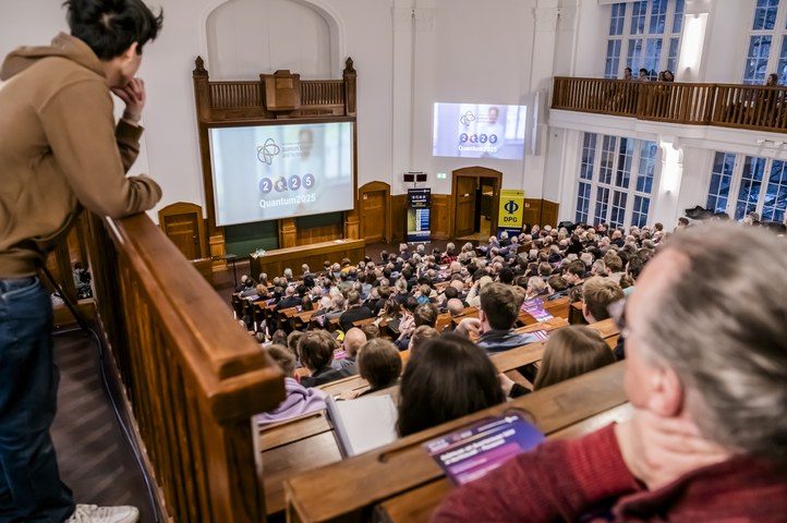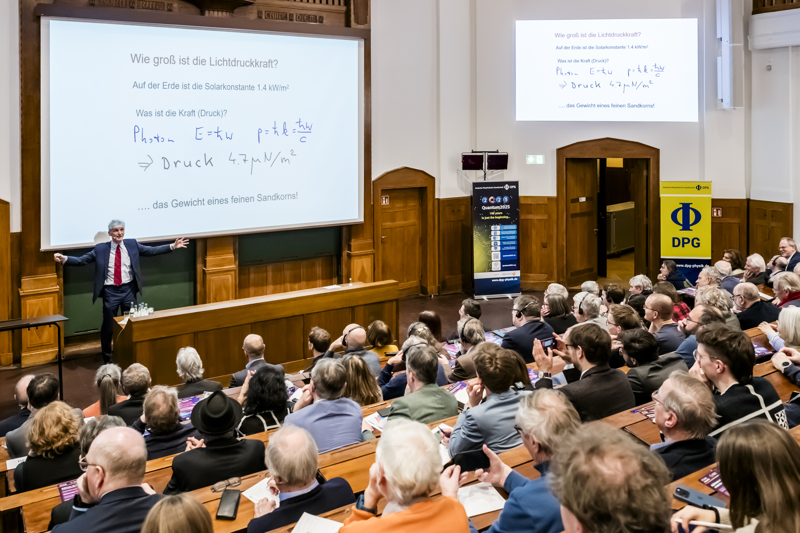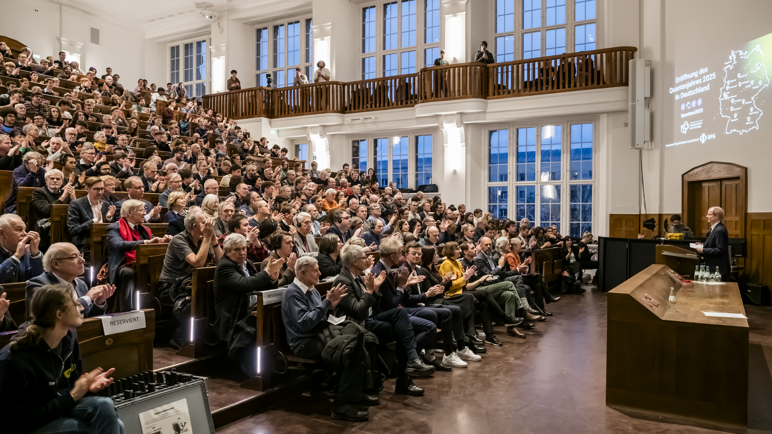 Am 14. Januar 2025, zugleich auch dem 180. Geburtstag der DPG, starteten die Aktivitäten des Quantenjahrs in Deutschland mit einer öffentlichen Veranstaltung an der Humboldt-Universität zu Berlin. Rund 450 Teilnehmende waren vor Ort, fast 400 weitere im Livestream.
