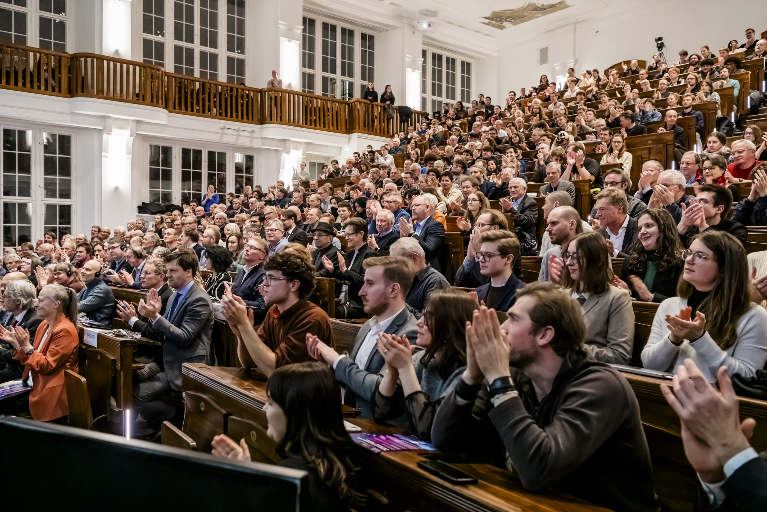 Die wissenschaftliche Abendveranstaltung „Quantum Legacies: Grappling with Quantum Theory over a Turbulent Century“ fand im Magnus-Haus Berlin statt. Wissenschaftshistoriker David Kaiser erläuterte in seinem Festvortrag die Umstände und Kontexte der Physik im 20. Jahrhundert, die auch durch den kalten Krieg, Faschismus und nukleare Bedrohungen geprägt waren. Dabei legte er den Fokus auch auf das Zusammenspiel der Generationen, da damals besonders junge Physiker:innen – gerade Mitte zwanzig wie heutige Studierende und Promovierende – die Entwicklung der Quantenmechanik maßgeblich geprägt haben. Diese Veranstaltung stand unter der Schirmherrschaft des Fachverbands Geschichte der DPG und der Physikalischen Gesellschaft zu Berlin.