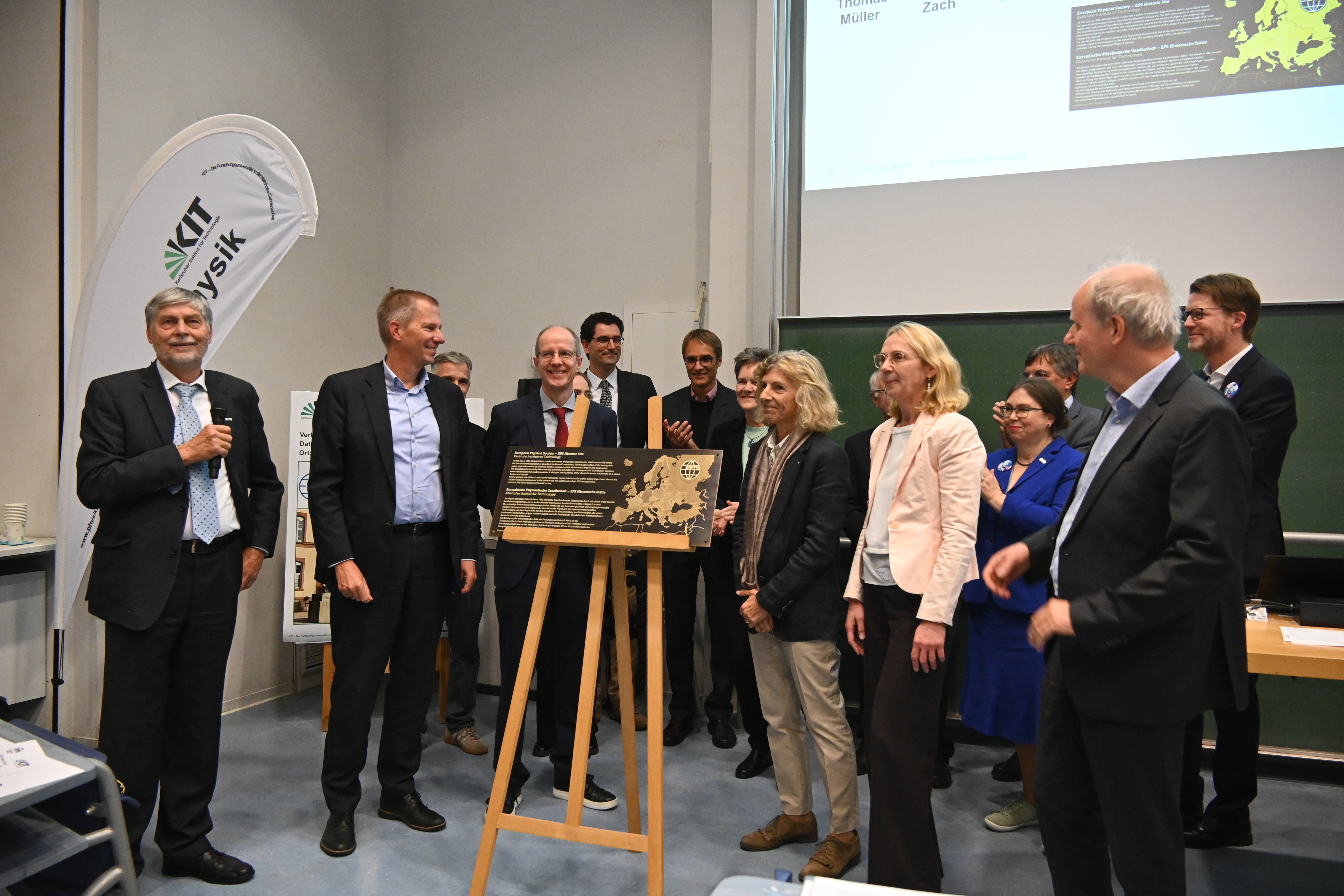 Mit dieser Ehrung würdigt die EPS die bahnbrechende Entdeckung der elektromagnetischen Wellen durch Heinrich Hertz (1857–1894), die dieser 1886 in Karlsruhe machte – im heute nach ihm benannten Hörsaal. Die feierliche Verleihung des „EPS Historic Sites Award“ fand am 30. Oktober 2025 im festlichen Rahmen am KIT-Campus Süd statt.