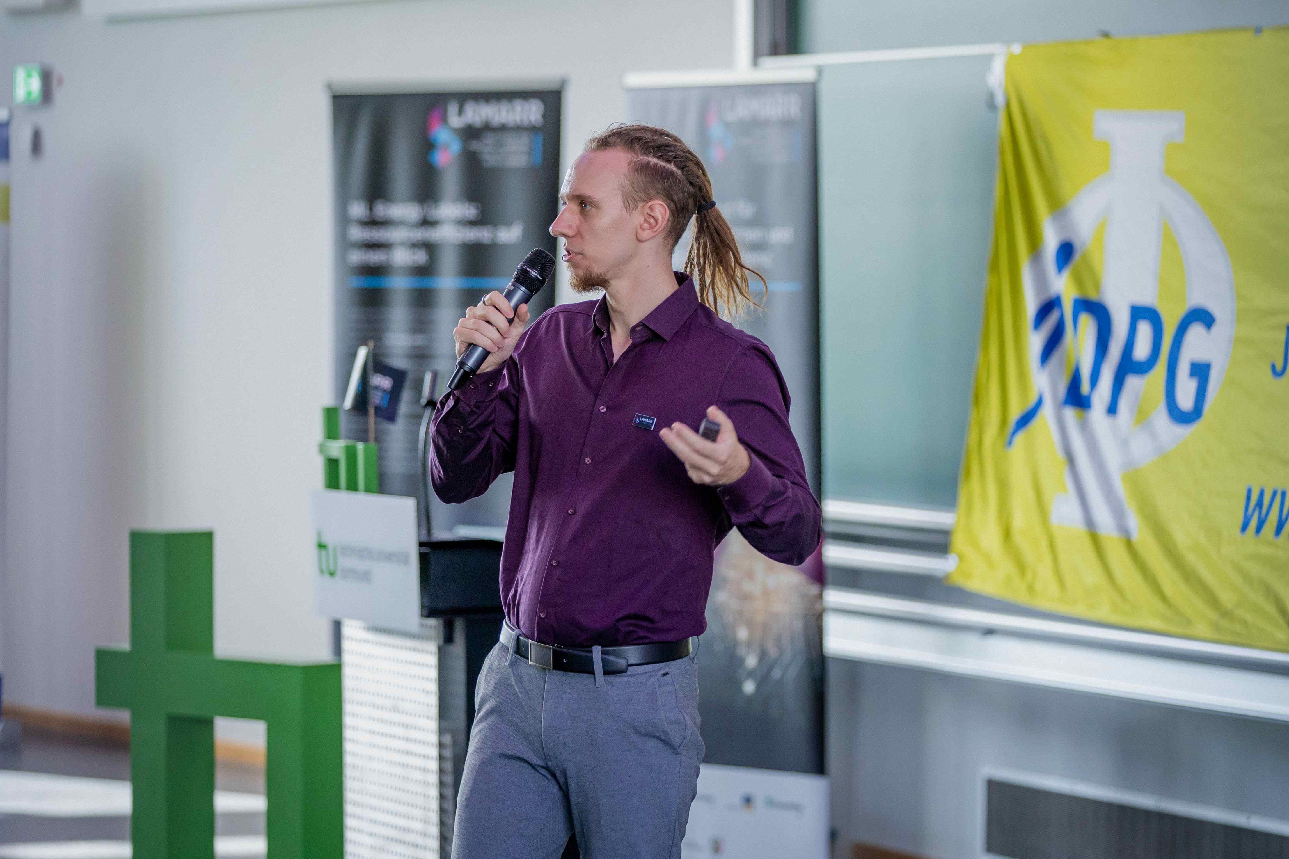 DOPPLERS bot wieder einmal ein vielfältiges Rahmenprogramm über drei Veranstaltungstage. Die Teilnehmenden erlebten Führungen am Campus der Technischen Universität Dortmund in Laserphysik, Robotertechnik, Chemischer Physik, Teilchenphysik, sowie dem Elektronenspeicherring DELTA. Junge Wissenschaftler:innen des Sonderforschungsbereiches 1491 – Cosmic Interacting Matters präsentierten die Forschung und Zusammenarbeit im Bereich der Astroteilchen- und Plasmaphysik. Im Austausch mit den Forschenden des LAMARR Instituts lernten die Teilnehmenden neue Entwicklungen in der Forschung zur künstlichen Intelligenz und ihrer Anwendung kennen. In Kaffeepausen und interaktiven Programmpunkten bot DOPPLERS reichhaltige Möglichkeiten zum netzwerken, austauschen und kennenlernen. Des Weiteren erhielten sie Einblicke in die Universitätsallianz Ruhr und ihre Forschung präsentiert durch Prof. Metin Tolan, Prof. Julia Tjus und Prof. Eric Parteli. Darüber hinaus gab Prof. Doris Reiter den Teilnehmenden einen Einblick in die Welt der Quantenphysik und des Quantencomputing und in das Internationalen Jahr der Quantenwissenschaften und -technologien 2025. Der abschließende Höhepunkt der Veranstaltung war die Siegerehrung am Sonntag und damit die Bekanntgabe derjenigen, die Deutschland beim internationalen Wettbewerb PLANCKS vertreten werden.