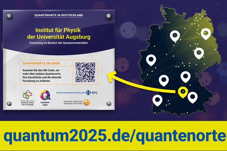 Deutschlandweit sind eine Vielzahl von Orten, Gebäuden und Institutionen in besonderer Weise mit der Quantenphysik verbunden. „Die Forschung der Quantenphysik in Deutschland verweist auf eine große Tradition, ist aber zugleich zukunftsweisend durch eine Vielzahl von Aktivitäten im akademischen und industriellen Umfeld. Mit der Karte der Quantenorte soll diese Dynamik anschaulich gemacht werden.“, erläutert Projektleiter Matthias Weidemüller. Die Aktion „100 Quantenorte – Inkubatoren der Quantenforschung“ identifiziert solche Orte und präsentiert grundlegende Informationen zur aktuellen Forschung wie auch zur Geschichte der Quantenphysik gebündelt auf einer interaktiven online-Landkarte (https://www.quantum2025.de/quantenorte). Diese dient als Ankerpunkt und enthält kurze Steckbriefe der jeweiligen Orte. Gebäudeplaketten vor Ort weisen den Quantenort aus und enthalten einen QR-Code zur Webseite. So wird die große Verbreitung dieses Forschungszweiges für die Öffentlichkeit sichtbar.