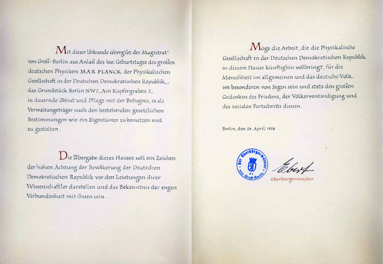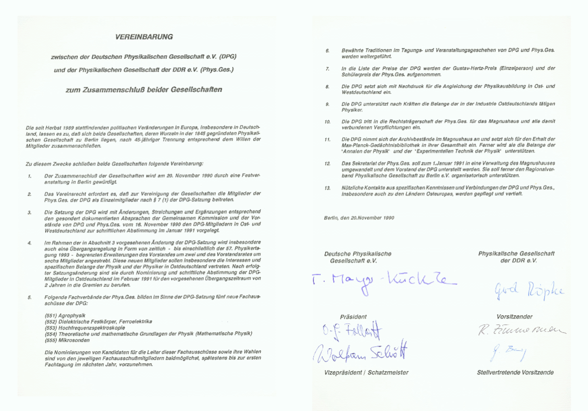 Eine besondere Rolle spielen die Akten der ehemaligen Physikalischen Gesellschaft der DDR. Diese lagerten im Magnus-Haus, dem früheren Sitz der Gesellschaft, befanden sich jedoch in einem prekären Erhaltungszustand. Im Jahr 2019 wurde der gesamte Bestand von rund 500 Aktenordnern beim Zentrum für Bucherhaltung in Leipzig trockengereinigt, entmetallisiert, entsäuert und anschließend digitalisiert. Da es sich um den einzigen erhaltenen Bestand einer naturwissenschaftlichen Vereinigung der DDR handelt, wurde das Projekt von der Koordinierungsstelle für die Erhaltung des schriftlichen Kulturguts aus einem Sonderfonds gefördert – die DPG musste lediglich 25 Prozent der Kosten selbst tragen.