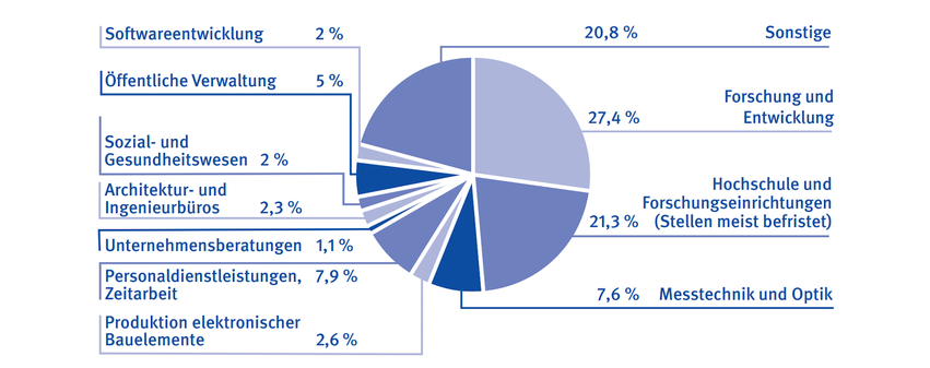 Physikerinnen und Physiker haben deshalb sehr gute Chancen auf dem Arbeitsmarkt. Die Arbeitslosenquote in dieser Berufsgruppe liegt bei etwa zwei Prozent2.