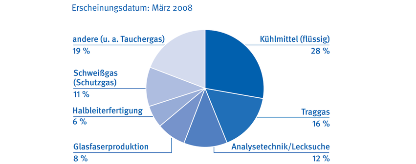 Größter Einzelposten – bei einem Anteil von 28 Prozent am Weltbedarf – ist der Einsatz als Kühlmittel (Abb. 2). Flüssiges Helium ist in vielen Fällen nahezu konkurrenzlos zum Erreichen sehr tiefer Temperaturen (unterhalb von minus 200 Grad Celsius). Zwar haben Rückgewinnungsanlagen und andere technische Entwicklungen den Verbrauch so gesenkt, dass moderne Systeme nur noch gelegentlich befüllt werden müssen. Trotzdem sind insbesondere Magnetresonanz-Tomographen (MRT) für die medizinische Diagnostik und „NMR-Spektrometer“, die für chemische Analysen genutzt werden, auf Helium angewiesen. Anwendungen finden sich auch in der Halbleiterproduktion und in der Festkörperphysik [8]. Mit Helium gekühlt werden zudem Bauteile von Teilchenbeschleunigern und so genannte SQUIDs. Mit diesen Magnetfeldsensoren werden beispielsweise Hirnströme gemessen.