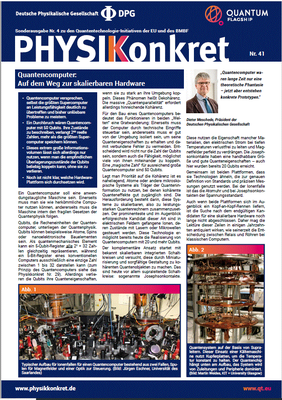 Quantencomputer: Auf dem Weg zur skalierbaren HardwareAusgabe 41 | November 2019 | „Quantencomputer waren lange Zeit nur eine theoretische Phantasie – jetzt aber entstehen konkrete Prototypen.“ - Dieter Meschede, Präsident der Deutschen Physikalischen Gesellschaft Sonderausgabe Nr. 4 zu den Quantentechnologie-Initiativen der EU und des BMBFhttps://www.dpg-physik.de/veroeffentlichungen/publikationen/physikkonkret/pk41https://www.dpg-physik.de/veroeffentlichungen/publikationen/physikkonkret/pk41/@@download/image/PK_41.GIF