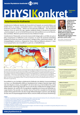 Ausgabe 5 | September 2009 | „Solarthermische Kraftwerke im Süden sind eine der besten Optionen, um CO2-freien Strom in großen Mengen bereitzustellen. Mittlerweile ist diese Technik so weit ausgereift, dass die Markteinführung energisch vorangetrieben werden sollte.“ - Gerd Litfin, Präsident der Deutschen Physikalischen Gesellschaft