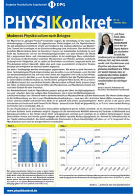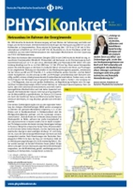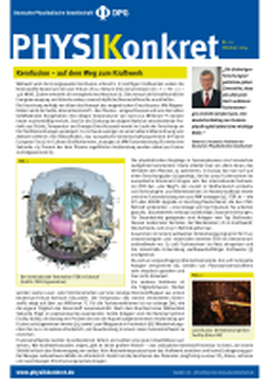 Physikkonkret ist ein Informationsblatt, das in kompakter und allgemeinverständlicher Form die Fakten zu aktuellen wissenschaftlichen und wissenschaftspolitischen Themen enthält. Die DPG möchte sich mit Physikkonkret gezielt in die öffentliche Diskussion zur Situation der Naturwissenschaften und der Physik in Deutschland einbringen und sich als Ratgeber bei zentralen Fragen unserer DPG-Mitglieder und Entscheidungsträger in Politik, Wirtschaft und Industrie anbieten. Damit nimmt die DPG ihre Verantwortung als neutrale und größte physikalische Fachgesellschaft der Welt wahr und stellt sich den aktuellen wissenschaftlichen und politischen Herausforderungen.